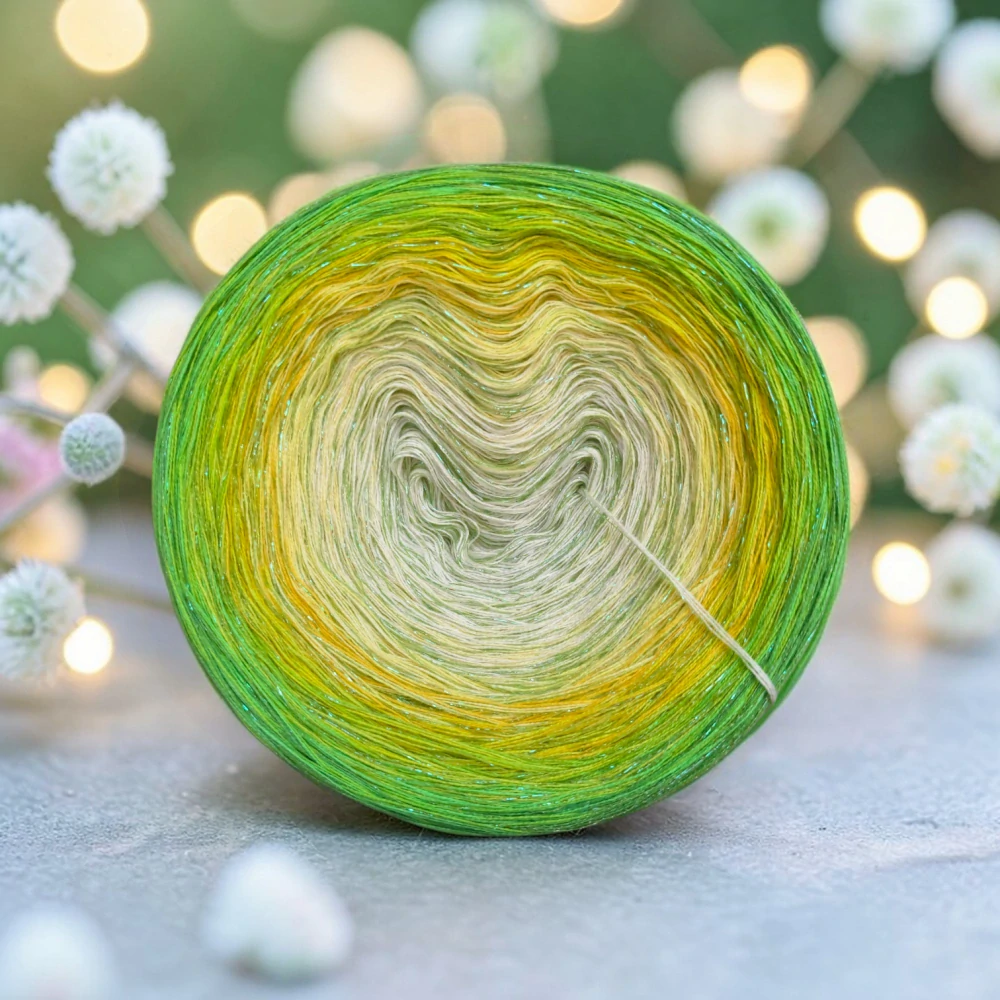 Ručně navíjené klubíčko značky Daisy mé vlastní výroby. Výroba těchto klubíček je kapacitně omezená, nejsou to klubka, která by se dala běžně sehnat, o to vzácnější a originálnější jsou.