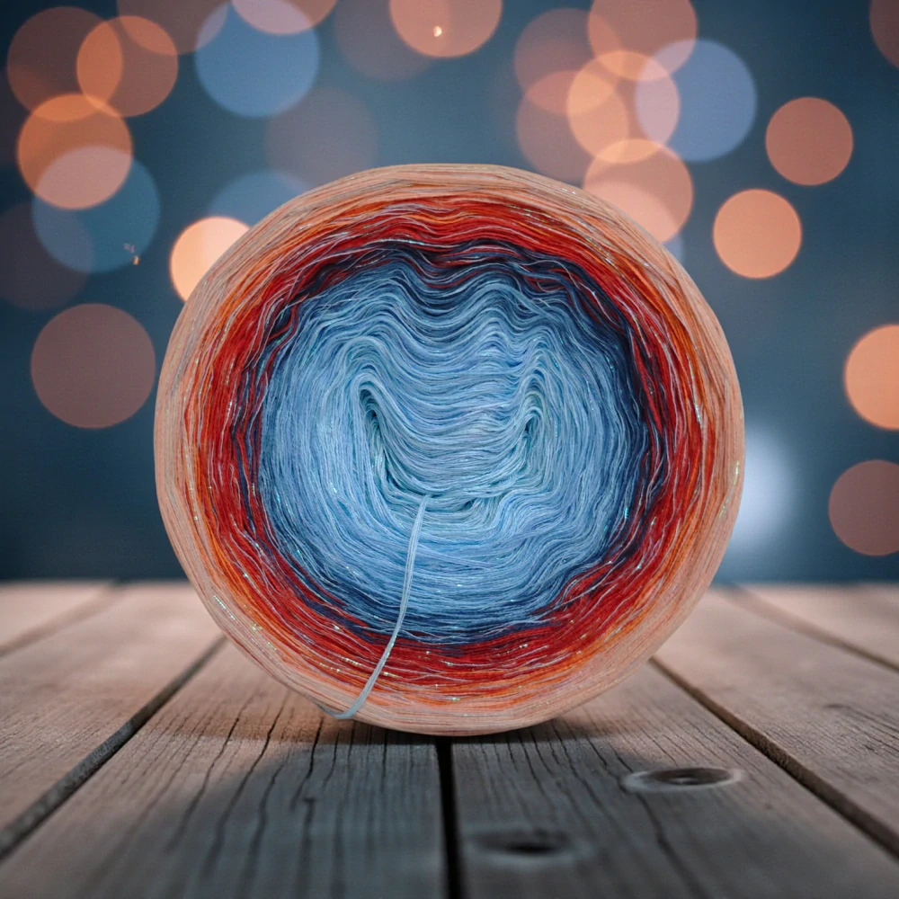 Ručně navíjené klubíčko značky Daisy mé vlastní výroby. Výroba těchto klubíček je kapacitně omezená, nejsou to klubka, která by se dala běžně sehnat, o to vzácnější a originálnější jsou.